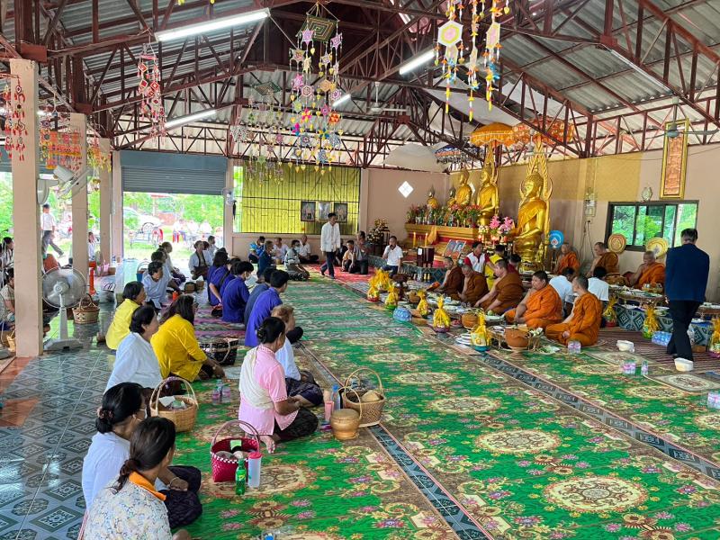กิจกรรม ทำบุญตักบาตรถวายเทียน ถวายภัตตาหารเช้า ถายชุดไทยธรรม เนื่องจากวันเข้าพรรษา ณ วัดบ้านโนนสำราญ