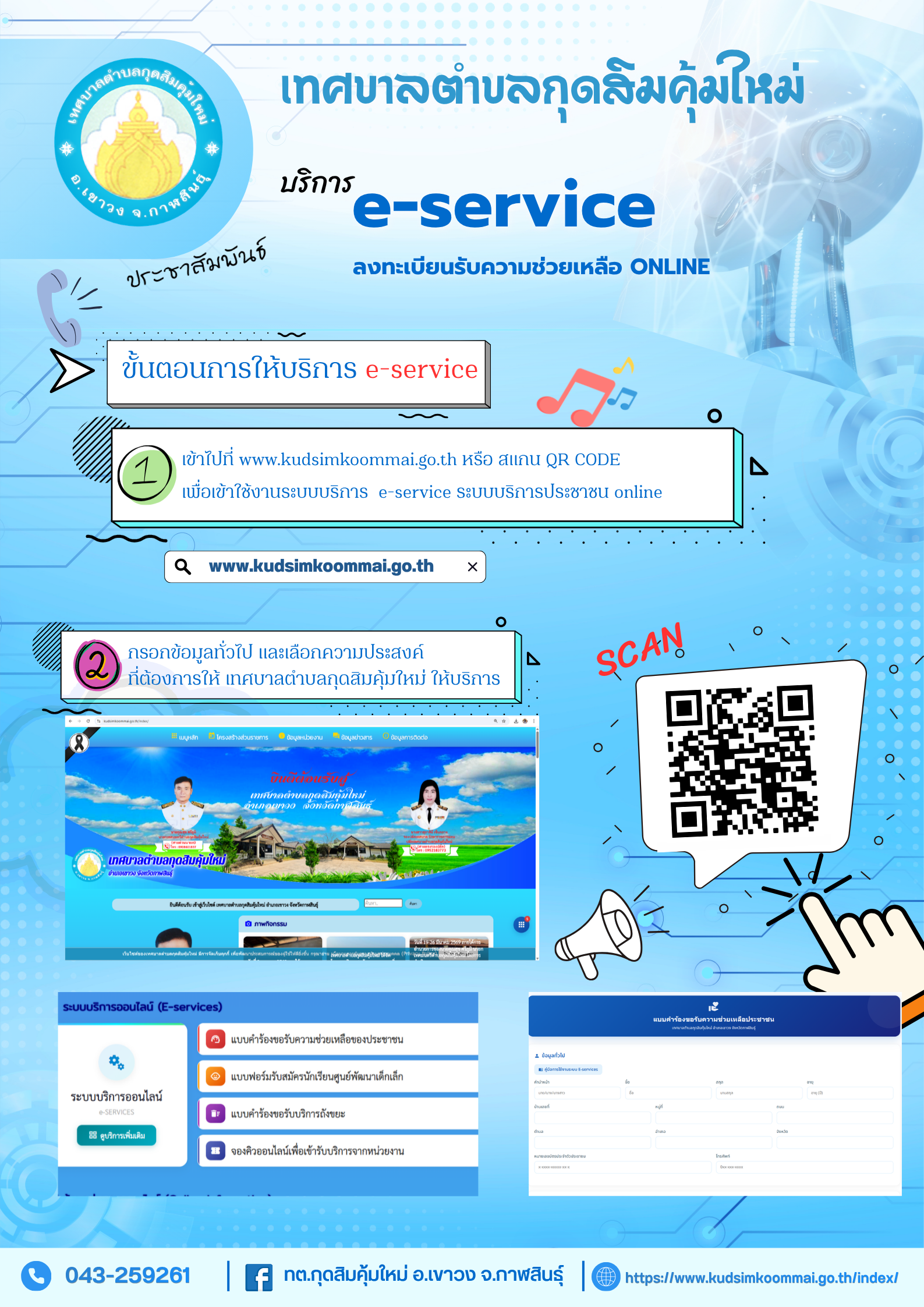ประชาสัมพันธ์การให้บริการ e-service ลงทะเบียนรับความช่วยเหลือ