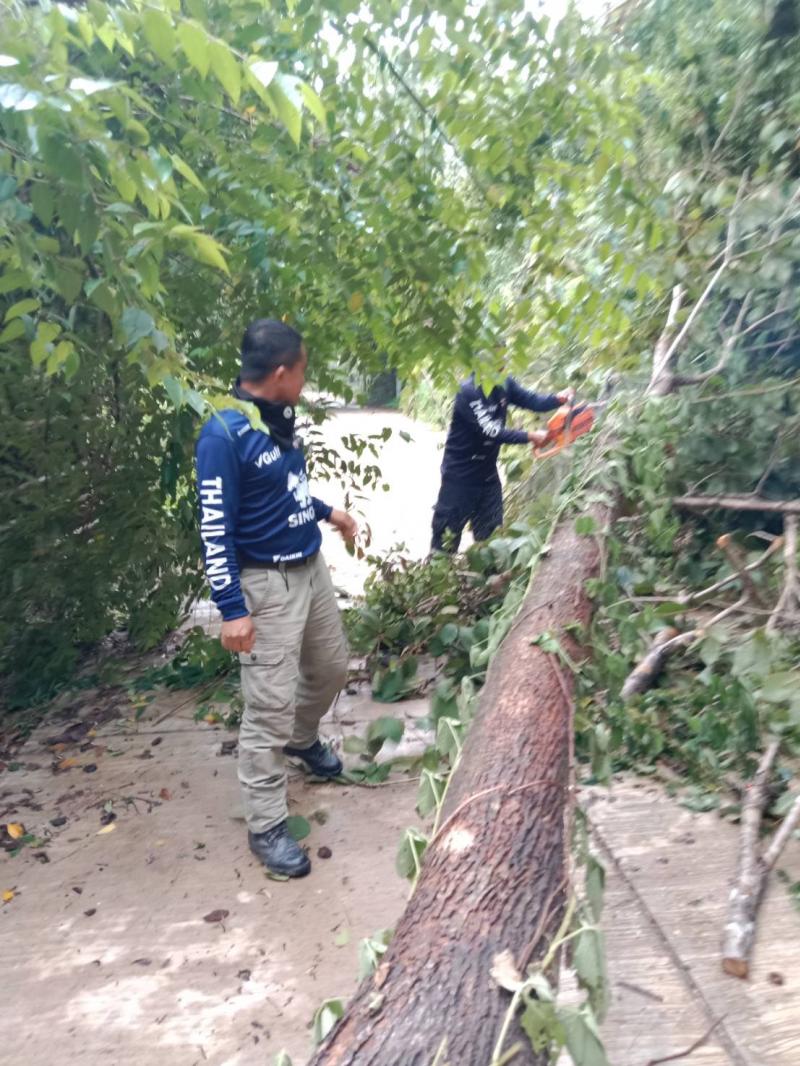 เทศบาลตำบลกุดสิมคุ้มใหม่ได้ออก ตัดต้นไม้ลมทับทางถนนสัญจร ซอยวานเลนไท หมู่ 10