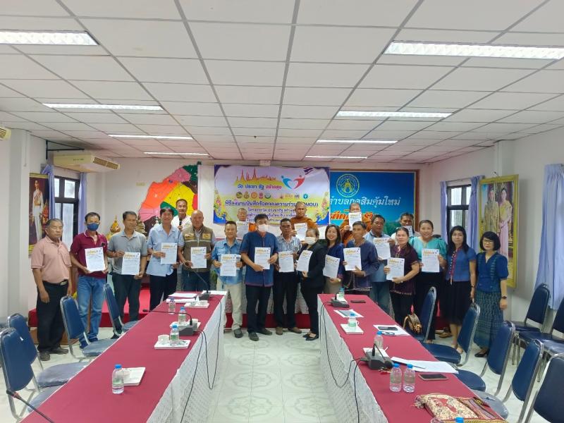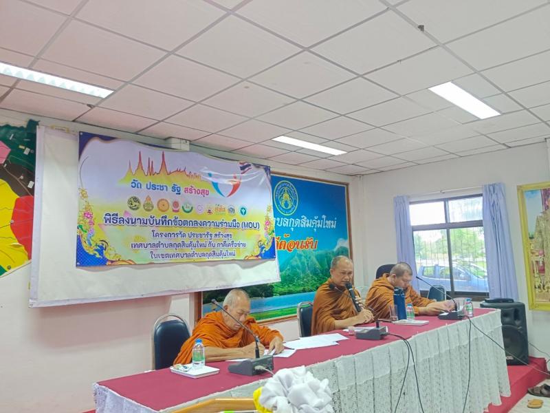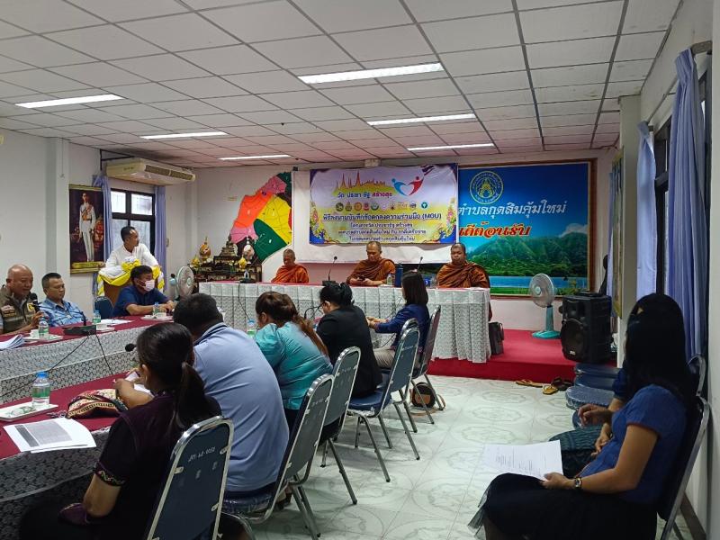 พิธีลงนามบันทึกข้อตกลงความร่วมมือ (MOU) โครงการ วัด ประชารัฐ สร้างสุข ตำบลกุดสิมคุ้มใหม่ กับ ภาคีเครือข่าย ในเขตเทศบาลตำบลกุดสิมคุ้มใหม่