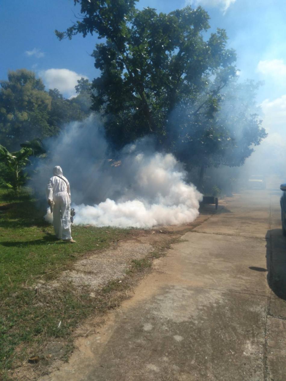 งานป้องกันและบรรเทาสาธารณภัย เทศบาลตำบลกุดสิมคุ้มใหม่ ฉีดพ่นหมอกควันกำจัดยุงลาย ป้องกันการระบาดของไข้เลือดออก ในบริเวณ 7 สี รีสอร์ต บ้านสมสนุก หมู่ที่ 8 ตำบลกุดสิมคุ้มใหม่ [8 สิงหาคม 2568]
